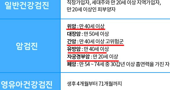 두번째. 자궁경부암 검사의 경우에는 여성 만20세이상이면 건강검진 지원받을수있습니다.