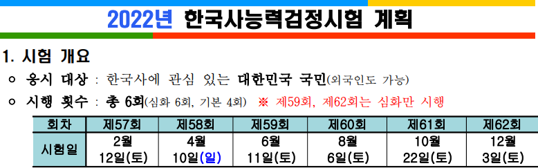 3. 제 59회 한국사 시험일정 : 2022년 6월 11일 토요일.
