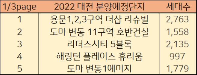 아래 대전아파트 2022년 분양일정을 확인하세요.