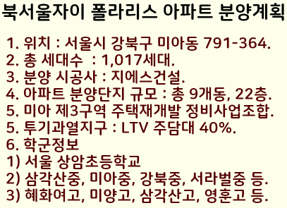 1. 분양위치 : 서울시 강북구 미아동 791-364번지.