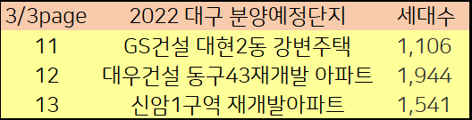 2022년에 대구시에서 분양예정인 아파트를 알아보겠습니다.