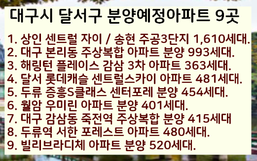 대구시 달서구 분양예정아파트 9곳을 확인하세요.