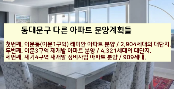 아래 서울 동대문구내 다른 아파트 분양예정단지도 확인하시기 바랍니다.