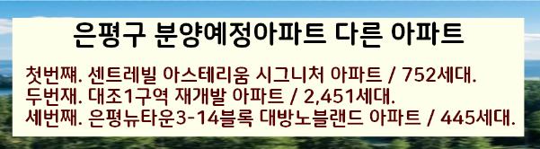 동일지역 은평구 분양예정아파트 다른곳들도 확인하세요.