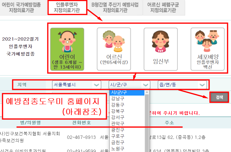 아래 홈페이지에서 서울에서 독감 무료접종 병원을 찾아서 예약하고 방문하시기 바랍니다.