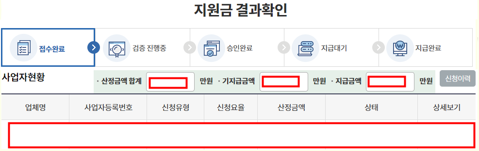 3. 확인지급 신청후, 산정금액과 최종 지급 예정금액을 확인하세요.