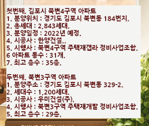 첫번째. 김포시 북변4구역 아파트