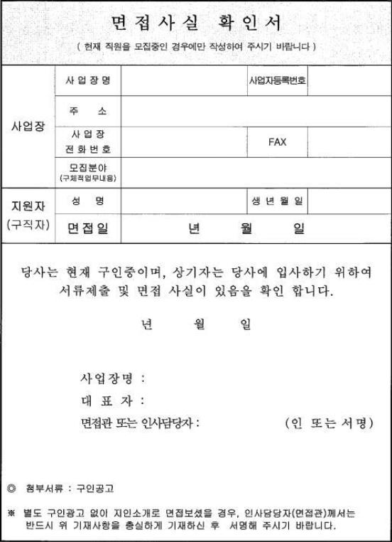 구직활동증빙서류로 면접확인서가 필요하신분들은 사전에 면접보기전에 인사과나 경영지원팀의 사전에 의뢰하시는것이 좋습니다.
