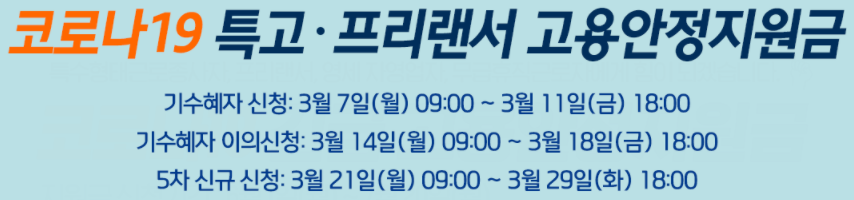 2022년 3월부터 특수고용 및 프리랜서 5차 긴급 고용안정지원금을 신청할수있습니다.