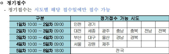 아래 2022년 한국사능력검정시험 지역별 정기접수 가능한 시도를 표로 정리했으니 참고하세요.