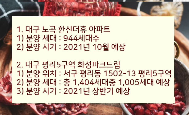 그리고 2021년 대구 아파트 분양 계획 및 일정을 위에서 참조하시기바랍니다.