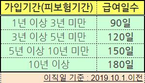 이렇게 가입기간별로 실업급여 지급일수가 다르니 첨부한 표를 참고하세요.