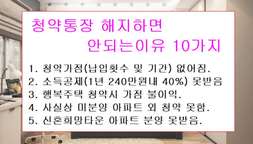 청약통장을 해지하면 안되는 이유를 상세하게 설명드리겠습니다.