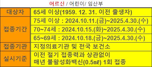 1. 65세이상 어르신 독감예방접종은 2025년 4월 30일까지입니다.