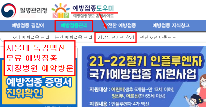 아래 홈페이지에서 서울에서 독감 무료접종 병원을 찾아서 예약하고 방문하시기 바랍니다.