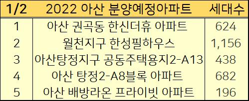 이렇게 2022년 아산 분양예정 아파트들의 5개 진행계획을 정리했습니다.