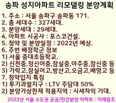 이렇게 서울 송파구 송파동의 성지아파트 리모델링 분양일정을 알려드렸습니다.