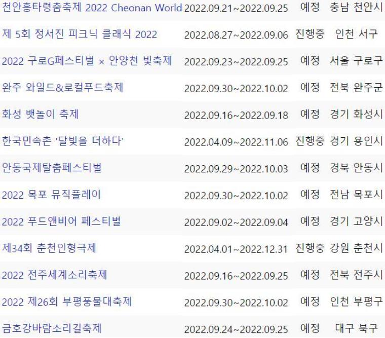 9월에 꼭 가볼만한 축제 일정을 정리했습니다.