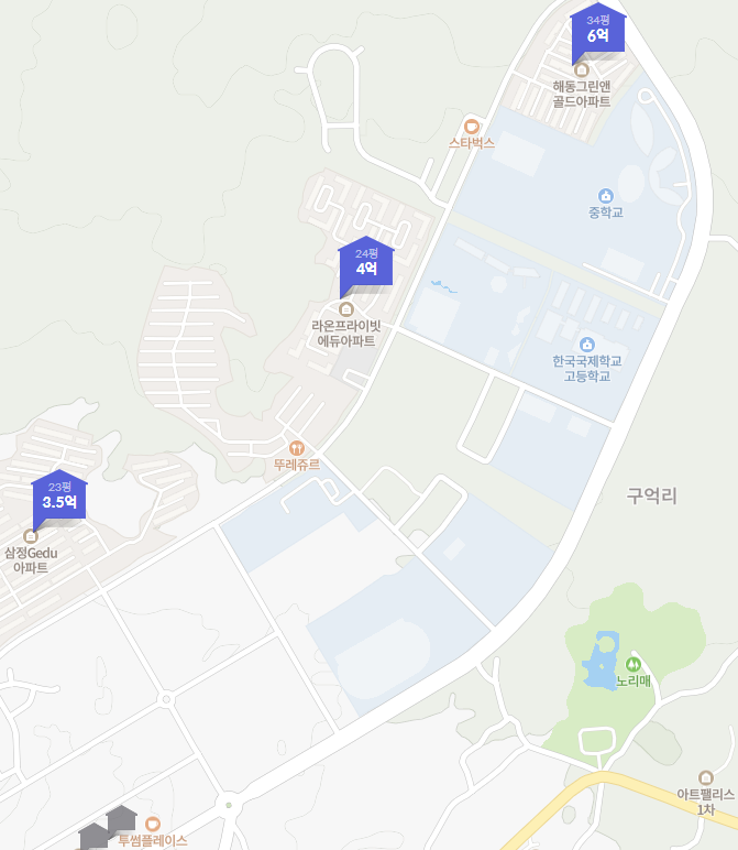 그래서 구억리 주변에 아파트가 없나 호갱노노에서 검색해봤습니다.