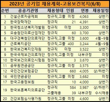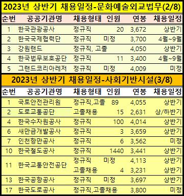 2023년 상반기 공기업 공채일정을 정리했습니다.