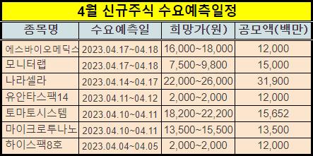 이렇게 2023년 4월에 신규 상장예정인 주식들을 알아봤는데요.