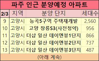 이렇게 2023년이후 파주시 아파트 분양일정을 표로 만들어서 알려드렸습니다.