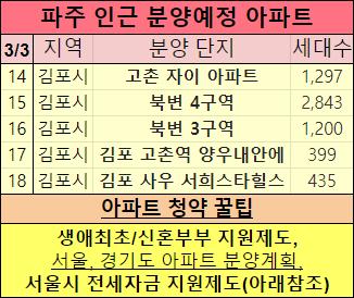 경기도 파주시에 분양예정인 아파트를 표로 만들었습니다.