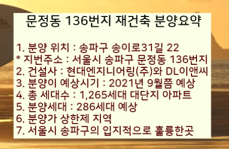 문정동 136번지 아파트 분양정보를 간단하게 요약해보겠습니다.