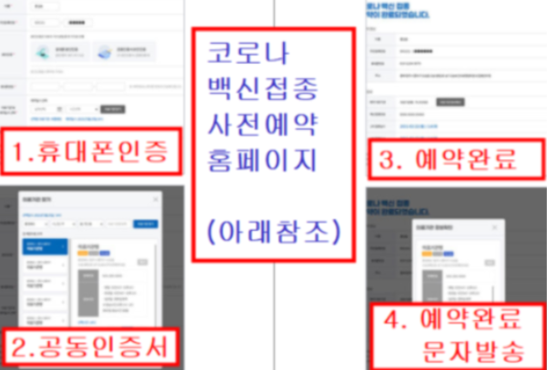코로나 예방접종 사전예약 시스템 홈페이지에서 신청가능합니다.