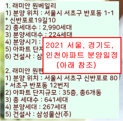 2021년에 서울시 아파트 분양의 분양 및 청약일정을 살펴보겠습니다. 보통 서울 아파트는 분양계획 모집공고문 이후에 한달내에 청약을 접수합니다. 2021년 서울 아파트 청약시 반드시 알아야할