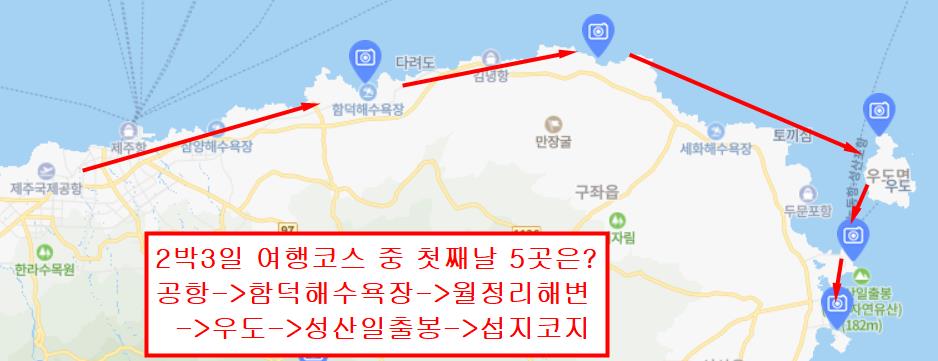 첫째날. 함덕해수욕장→(월정리해변)→우도→성산일출봉→섭지코지.