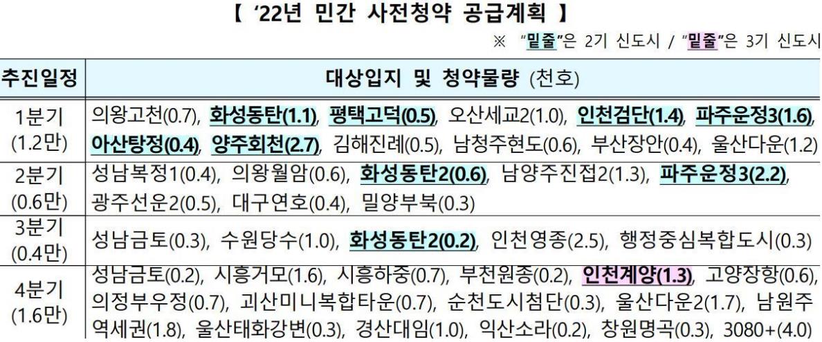 아래 2022년 서울 수도권 공공분양 및 3기신도시 사전청약일정도 정리했으니 참고하세요.