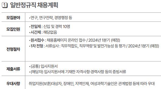1. 모집 분야 : 연구직, 연구전력, 경영행정지원.