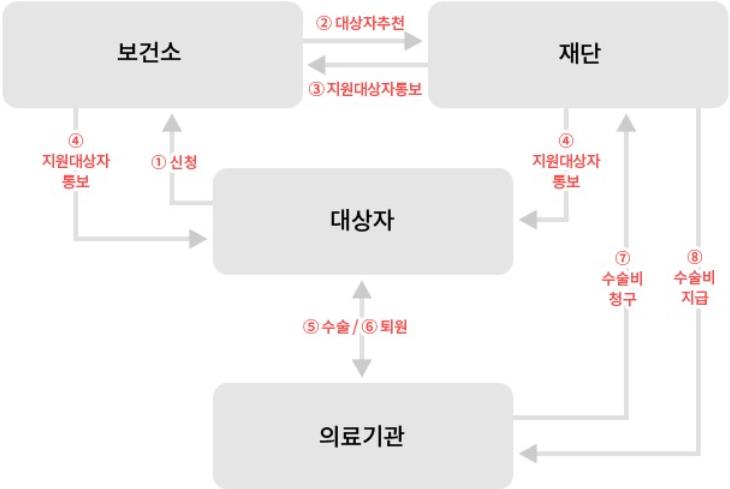 검사비와 진료비 및 수술비까지 지원범위에 포함됩니다.